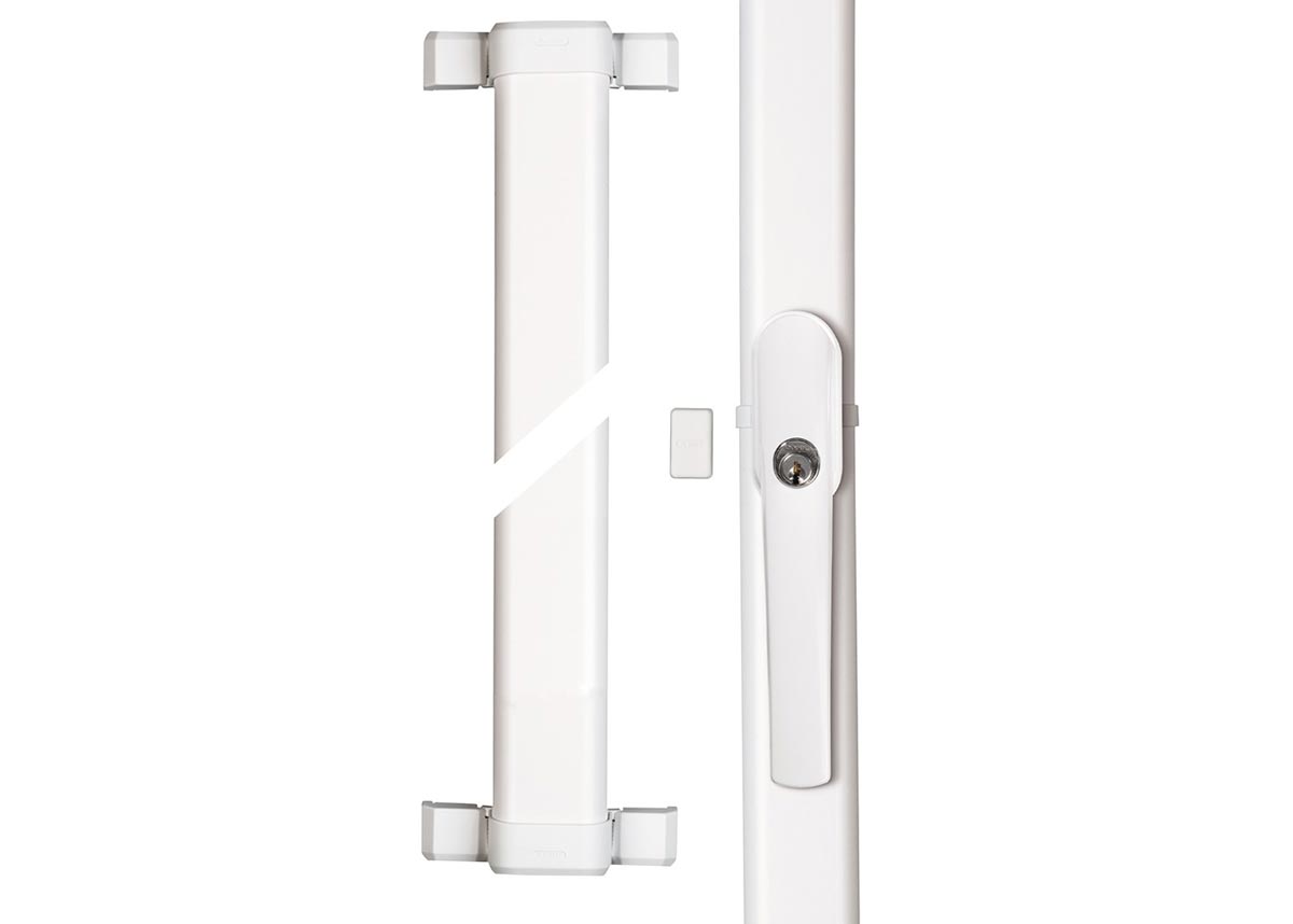 Mit dem VdS-anerkannten Funk-Fensterstangenschloss FOS 550 E werden Fenster und Fenstertüren aktiv vor Einbruch gesichert. Die Zweipunkt-Verriegelungsautomatik und die effektive Magnetfeldsensorik setzen Einbrechern einen Druckwiderstand von bis zu einer Tonne entgegen und melden bereits den ersten Aufhebelversuch an die Secvest Alarmzentrale.