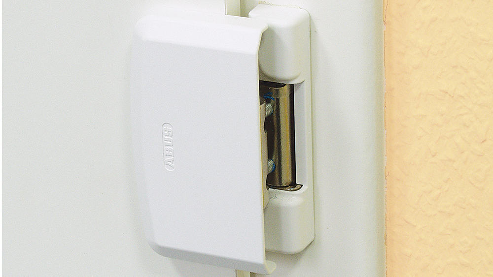 Die ABUS Scharnierseitensicherung schützt Eingangstüren vor Aufhebeln und bietet so Sicherheit für die Scharnierseite der Tür.