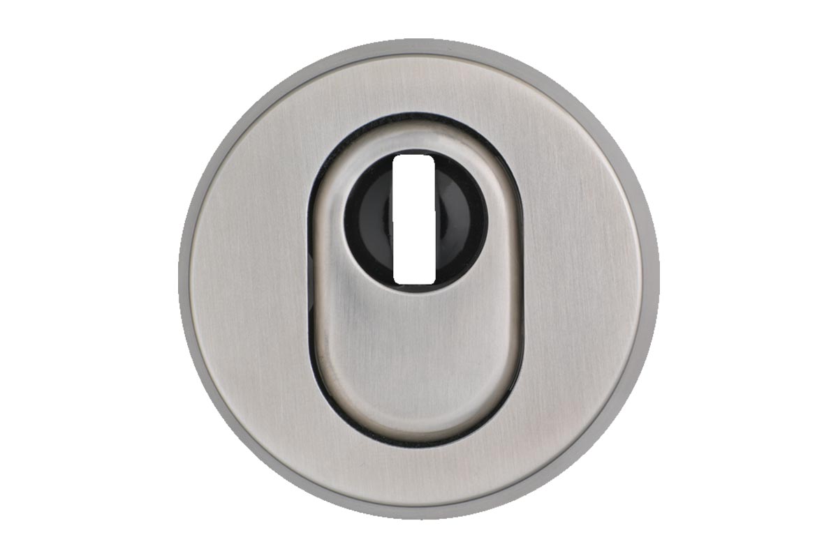 Überall dort, wo für Schutzbeschläge kein Platz ist oder dies einen optischen Bruch erzeugt, bietet sich die Montage von Zieh-Schutzrosetten an.